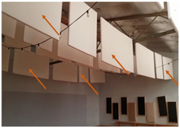 | הפחתת תהודה ורעש באולמות, חדרים, וחללים פנימיים . |