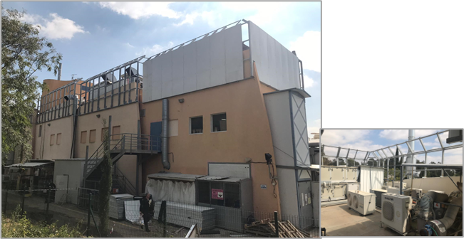 | גג של מפעל מלא עם מדחסים, צ'ילרים, ומנועים מחוללים רעש לכל הסביבה ,הפתרון: עוטפים את הגג עם וויספר עמיד בתנאי חוץ ועליו לוח פלדה \ פח \ פיבר צמנט מפעלי שמיר קיבוץ אייל 2019 |