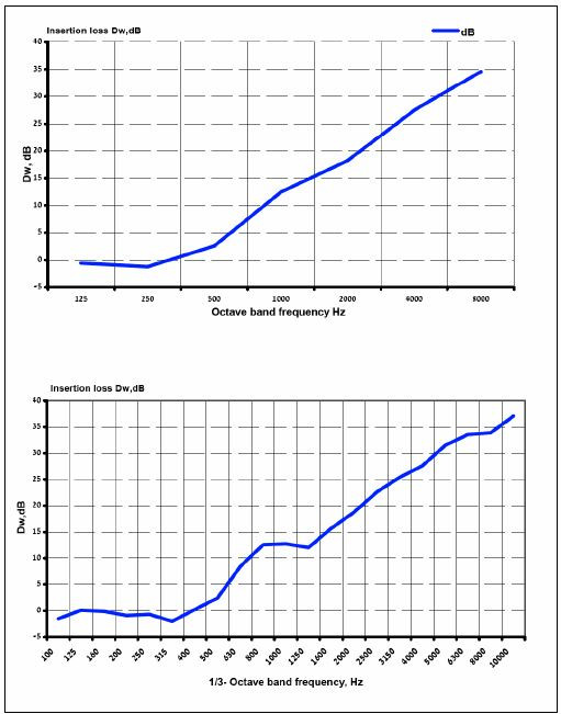 | נתוני חסימה מעבר קול דגם FT 55 Acoustic insulation graph |